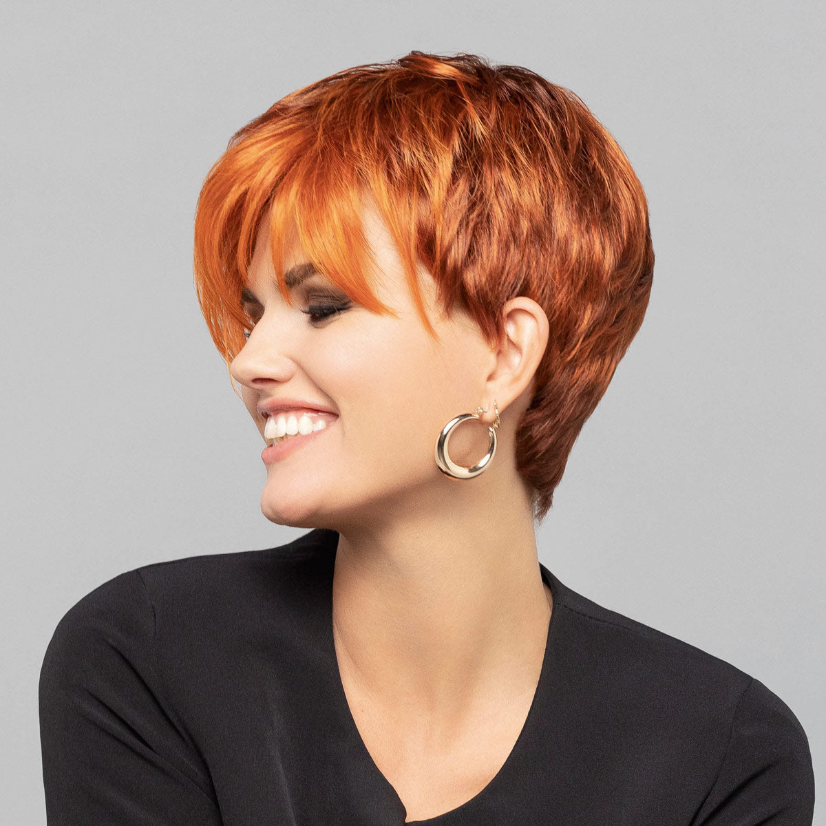 Die elegante und zugleich hippe Kurzhaarfrisur Roxy aus der High-End Comfort Kollektion von Gisela Mayer ist geschaffen für moderne und stylische Frauen, die ihre Individualität und Persönlichkeit gerne durch ihr Styling ausdrücken. Für Frauen, die gerne ihr Lebensgefühl durch ihren Look nach außen vermitteln und für die auch der Verlust ihrer Haare kein Hindernis darstellt. Diese Frisur wirkt weiblich und verführerisch, gleichzeitig auch etwas frech und modisch und überzeugt durch unkomplizierte Handhabung. Der Kurzhaarschnitt wirkt verjüngend und trendy.