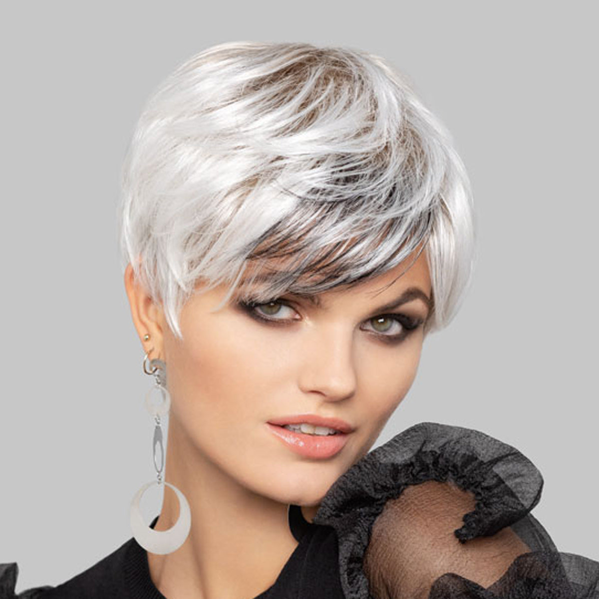 Die elegante und zugleich hippe Kurzhaarfrisur Super Lizzy aus der High-End Comfort Kollektion von Gisela Mayer ist geschaffen für moderne und stylische Frauen, die ihre Individualität und Persönlichkeit gerne durch ihr Styling ausdrücken. Für Frauen, die gerne ihr Lebensgefühl durch ihren Look nach außen vermitteln und für die auch der Verlust ihrer Haare kein Hindernis darstellt. Diese Frisur wirkt weiblich und verführerisch, gleichzeitig auch etwas keck und fesch und überzeugt durch einfache Handhabung. Der Kurzhaarschnitt wirkt verjüngend und trendy.