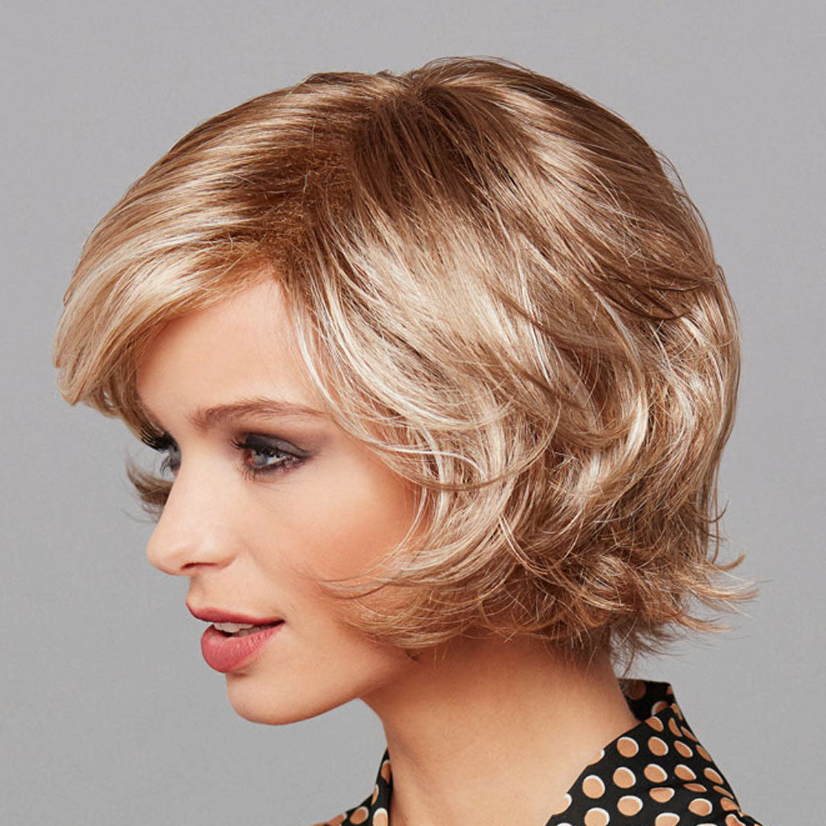 Die gesamte Montur aus weichem und angenehm zu tragenden Stoff wurde zu 100 % handgeknüpft, dadurch wirkt diese modische Damenperücke aus der Modern Hair Collection täuschend echt. Die feinen Kunsthaare besitzen ein tolles Volumen und eine intensive, seidig glänzende Geschmeidigkeit. Außerdem behalten die hochwertigen Fasern ihre permanente und top gestylte Form selbst beim Waschen bei, damit Ihr Zweithaar stets top frisiert daher kommt! An der Stirn wurde ein neuartiger Filmansatz, auch Lace Front genannt, eingearbeitet, der den Perückenrand perfekt kaschiert. Diese wunderschöne Perücke ist bei uns in der Standardgröße verfügbar, die einen idealen Halt bei einem Kopfumfang von 54-56 cm bietet.