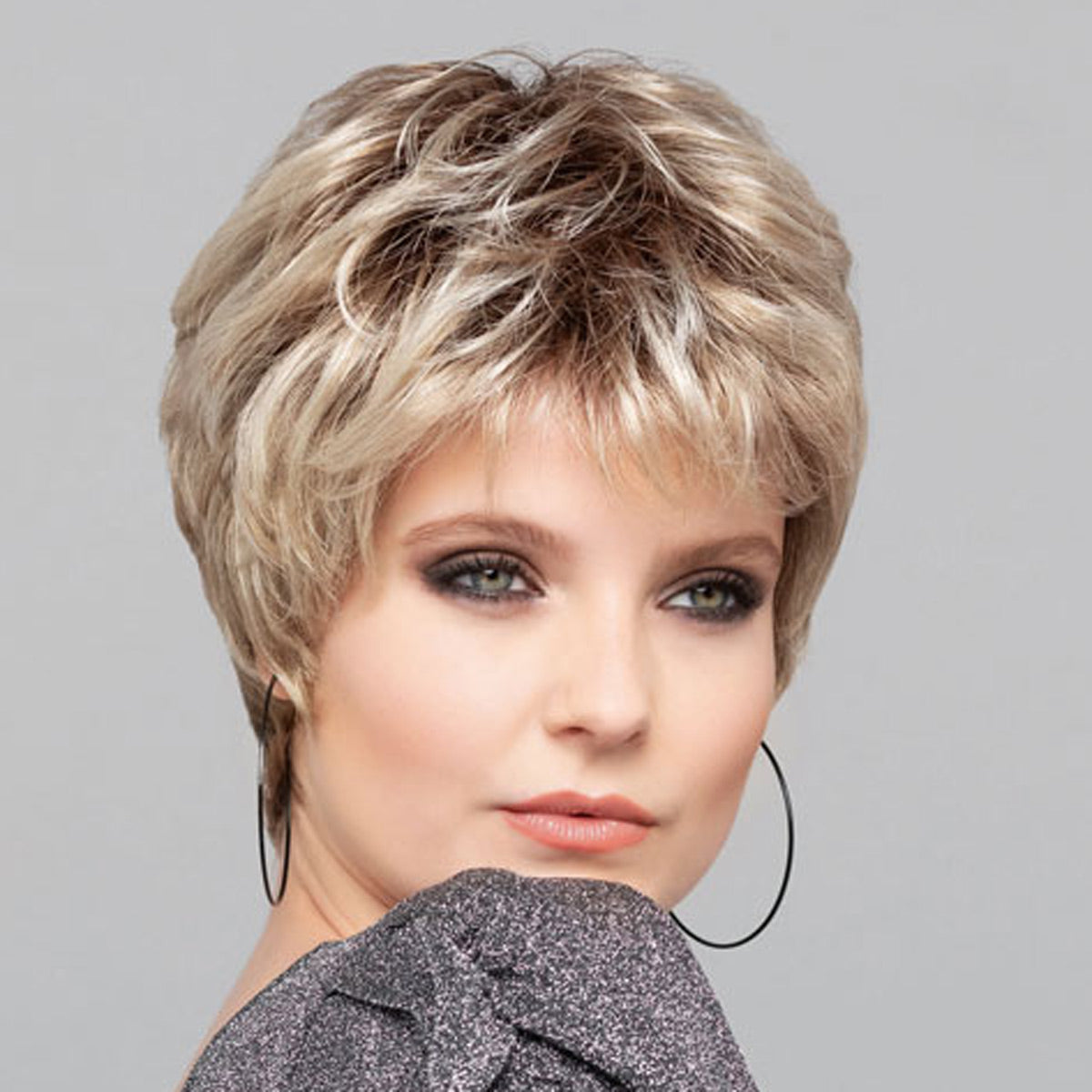 The elegant and trendy short hairstyle Super Roma from the high-end comfort collection by Gisela Mayer is designed for modern and stylish women who like to express their individuality and personality through their styling. For women who like to convey their attitude to life through their look and for whom the loss of their hair is no obstacle. This hairstyle looks feminine and seductive, but also a bit snappy and elegant and is easy to handle. The short haircut looks rejuvenating and trendy.